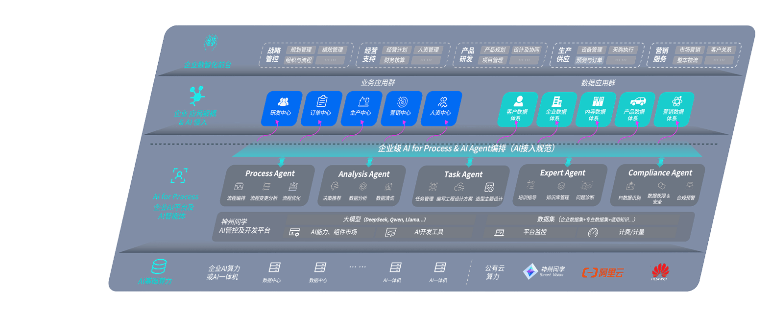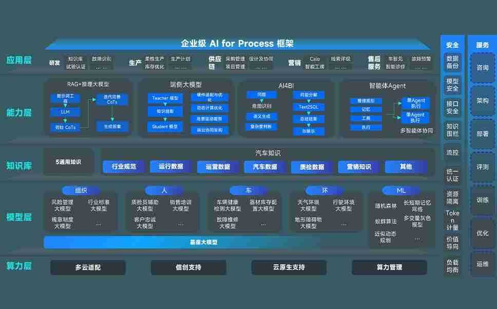 端到端的一站式AI工作空间深度融合了从企业战略规划到日常经营的全流程业务板块,,,,定向解决车企内部领域多、、、、部门多、、、、链条长、、、、场景碎片化等难题,,,,支持车企快速构建以AI为核心的生产力写作体系,,实现任务执行与AI能力的无缝集成与交互