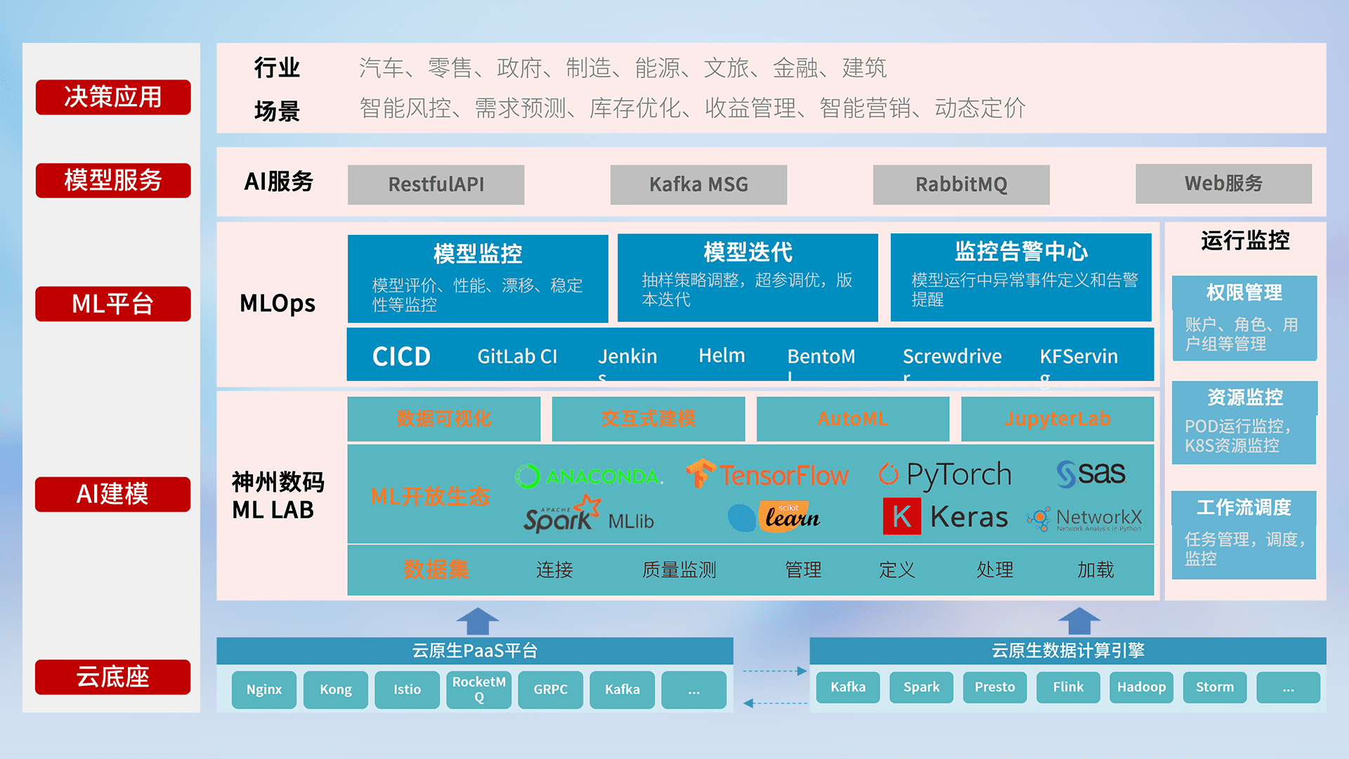 数据+模型双引擎驱动,,面向智能服务场景,,,快速灵活利用AI技术,,,支持业务决策,,助力企业智能化转型破局。。